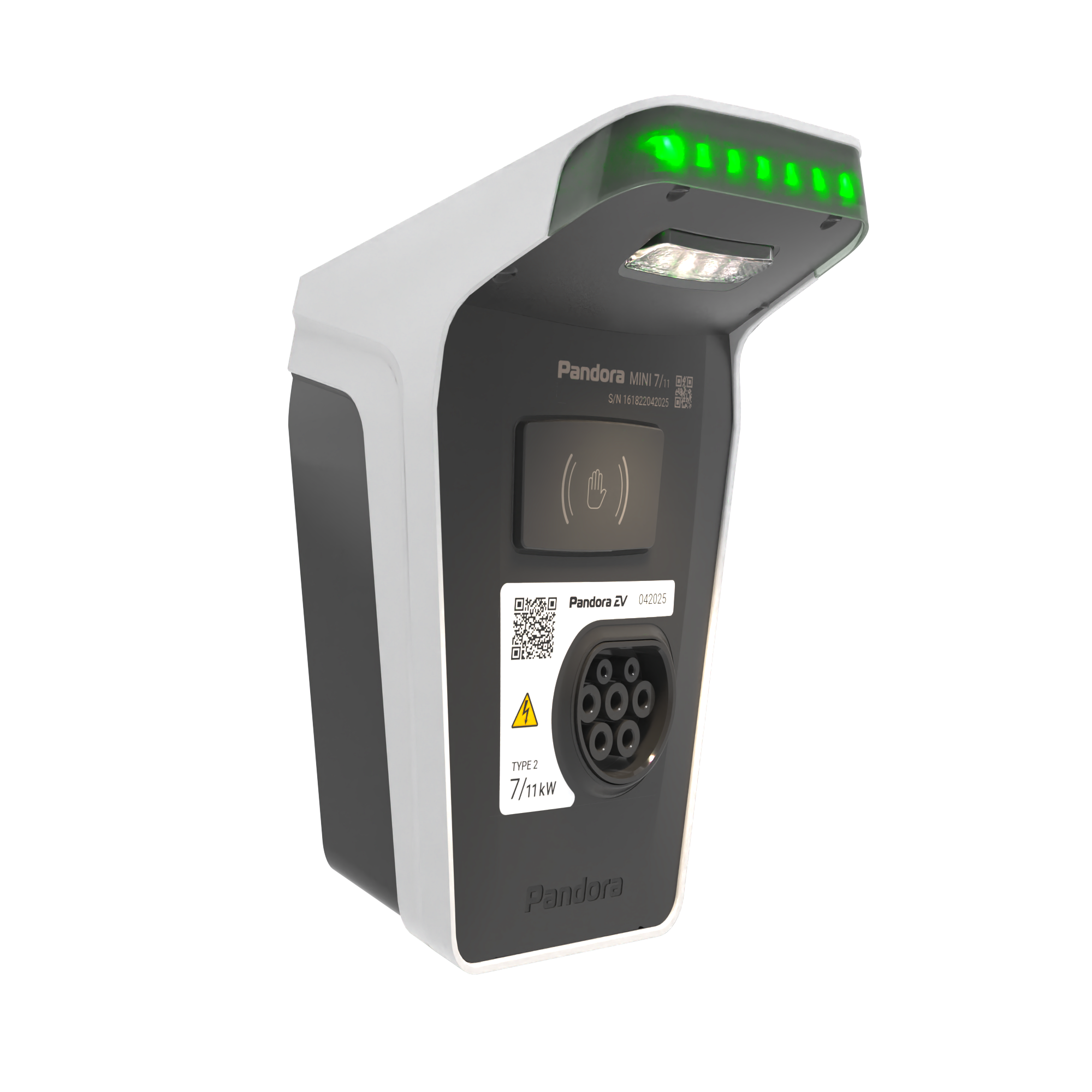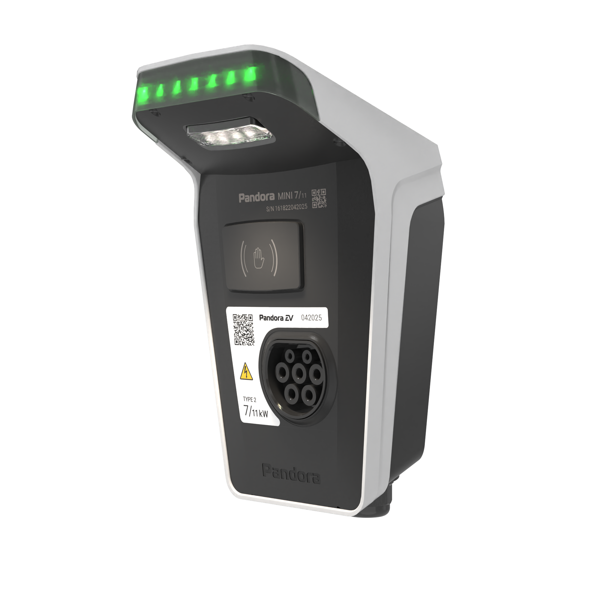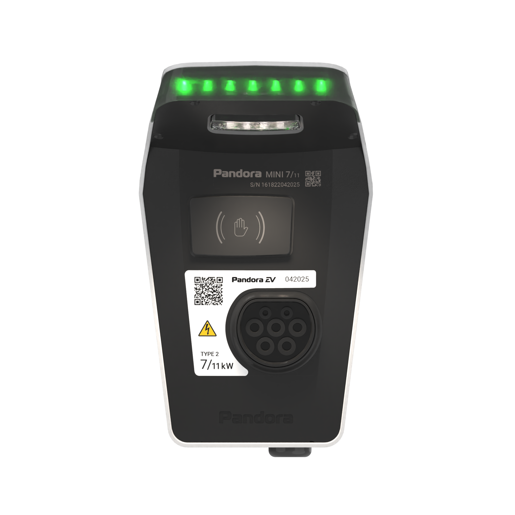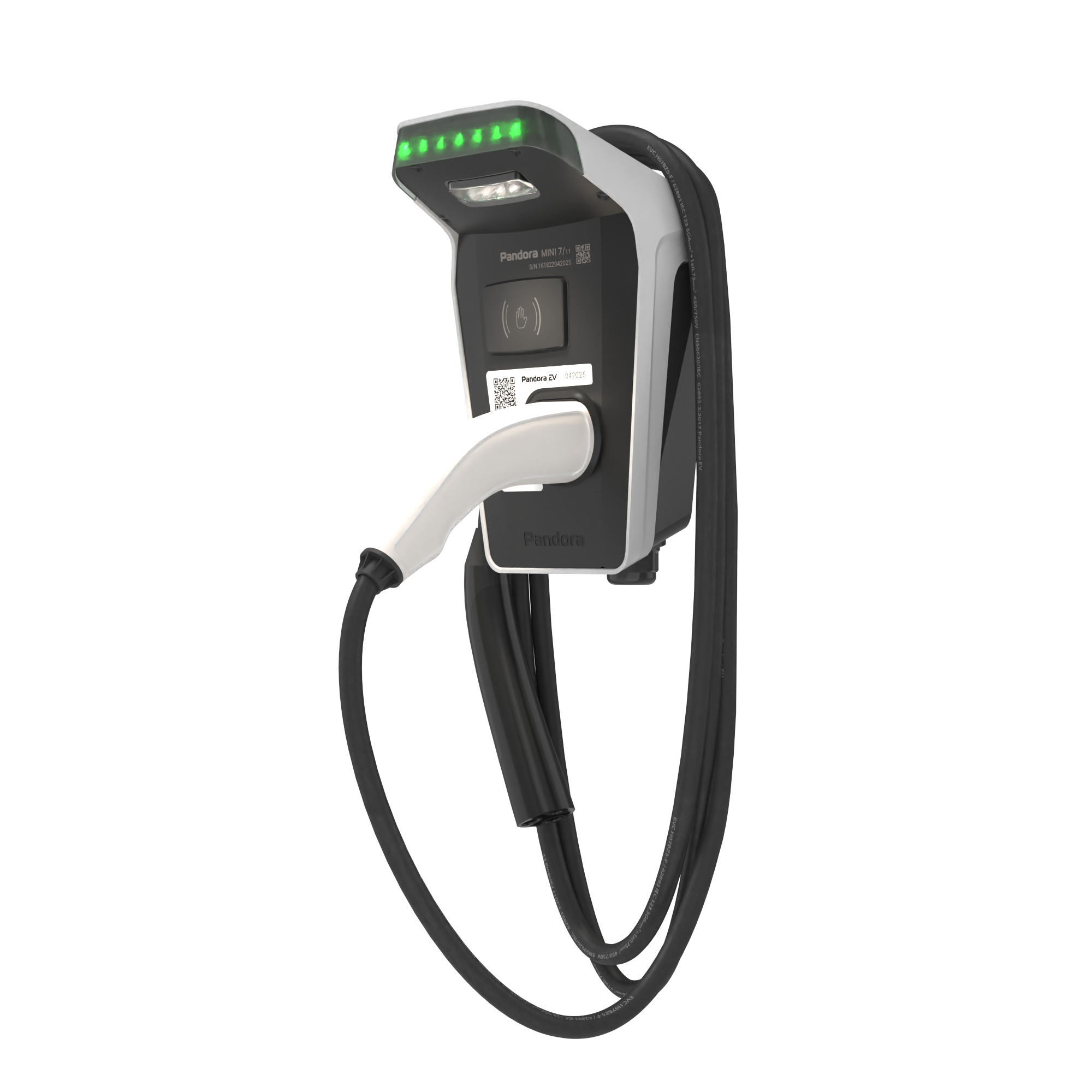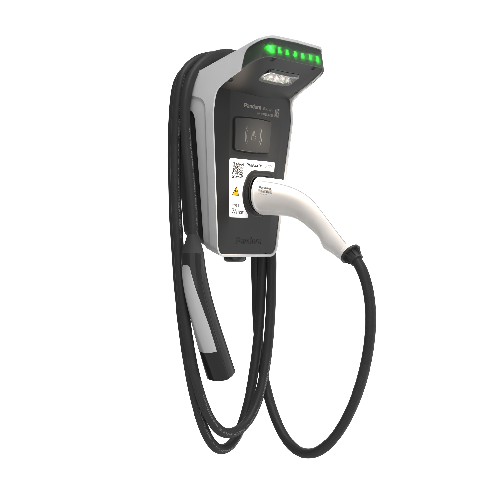 Домашняя зарядная станция Pandora MINI 711 предназначена для зарядки переменным током мощностью до 7,4 или 11кВт (1Ф/3Ф) всех типов электромобилей и гибридов.